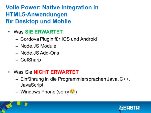 und Desktop: Echte HTML5-Anwendungen mit Cordova und NW.js Thomas Hilzendegen MI, 30. September 2015, 8.30 bis 9.45 Watfordsaal B Volle Power: Native Integration in HTML5-Anwendungen für Desktop und Mobile Thorsten Hans MI, 30. September 2015, 10.30 bis 11.45 Watfordsaal B 2D- und 3D- Datenvisualisierung für alle Plattformen mit HTML5 Christian Liebel, Manuel Rauber MI, 30. September 2015, 14.15 bis 15.30 Watfordsaal B Auch ohne Netz: Offline-First- Architekturen für HTML5-Apps Christian Weyer MI, 30. September 2015, 16.15 bis 17.30 Watfordsaal B Aber schnell! Performanceaspekte in Cross- Plattform-HTML5- Anwendungen Gregor Biswanger MI, 30. September 2015, 17.45 bis 19.00 Watfordsaal B