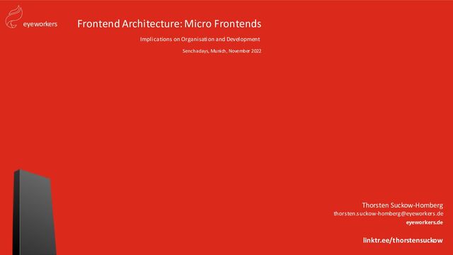 In diesem Vortrag stelle ich den Architekturansatz Micro Frontends vor, und gebe einen Überblick über Herausforderungen und Vorteile für Organisation und Entwicklung sowie mögliche Integration-Patterns.