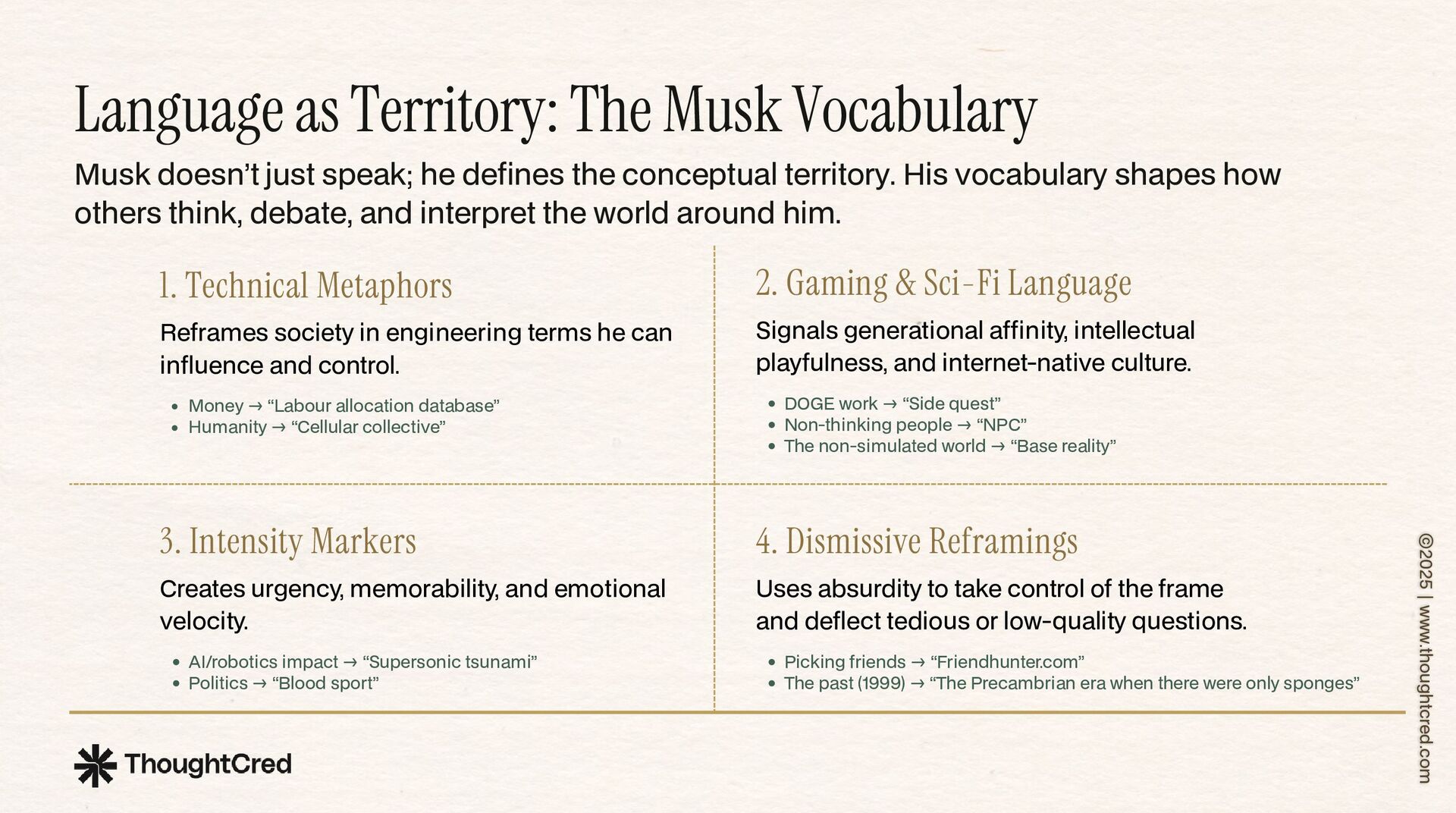 The Musk Language Taxonomy — Technical metaphors, gaming language, intensity markers
