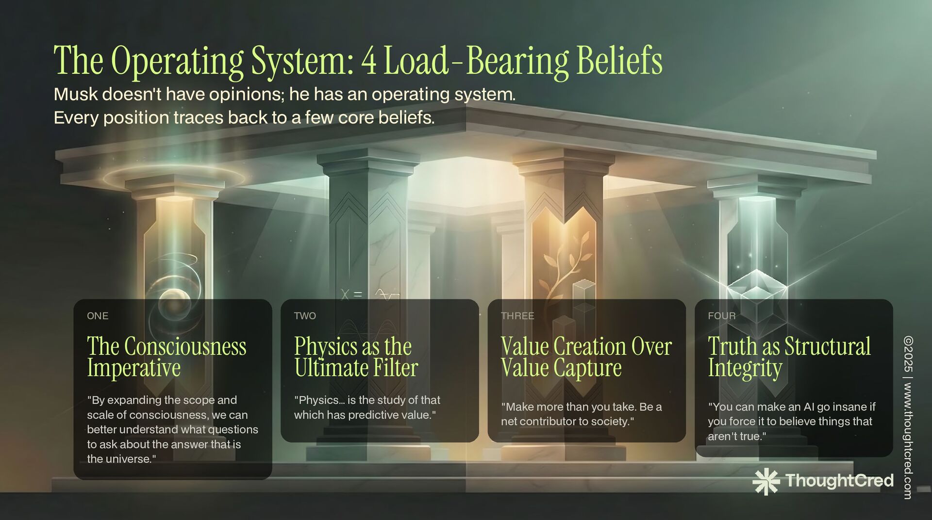 Musk's 4 Core Beliefs — The operating system that generates every position he takes