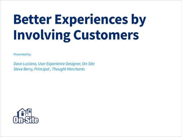 Better Experiences by Involving Customers Presented by: ! Dave Luciano,