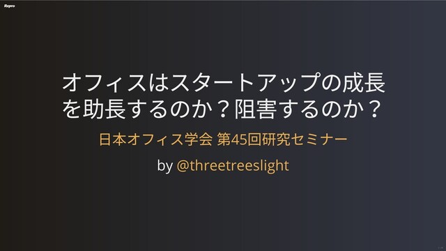 オフィスはスタートアップの成⻑ を助⻑するのか?阻害するのか? by ⽇本オフィス学会 第45 回研究セミナー @threetreeslight 1 / 41
