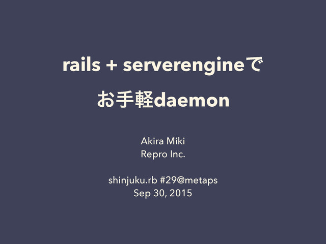 rails + serverengineͰ ͓खܰdaemon Akira Miki Repro Inc. shinjuku.rb #29@metaps