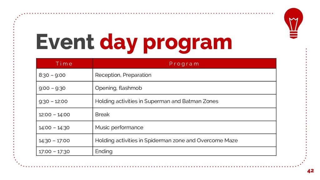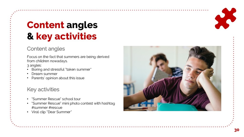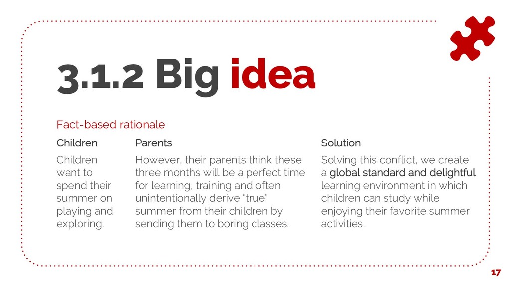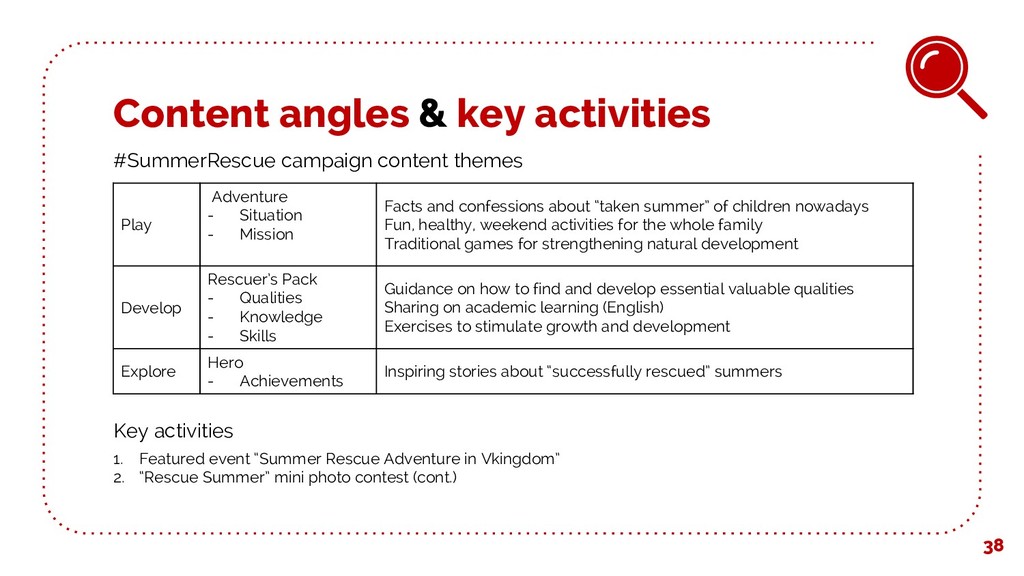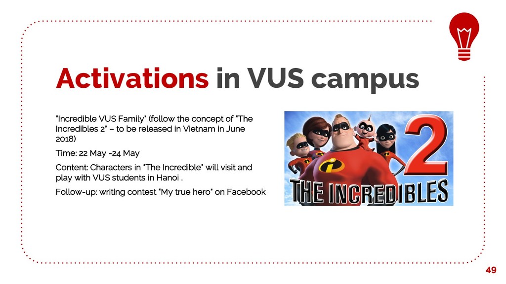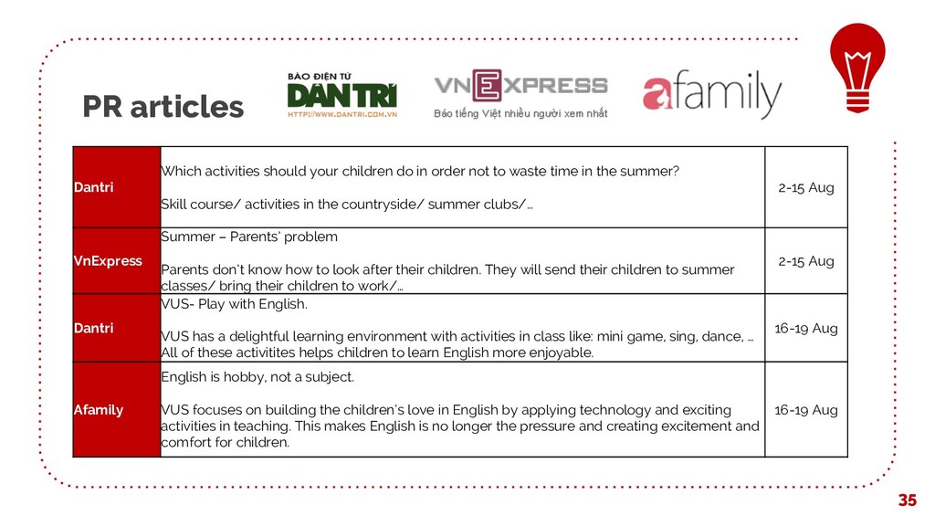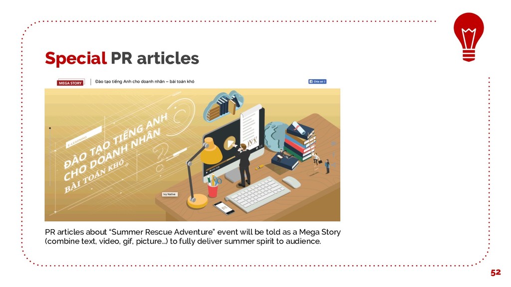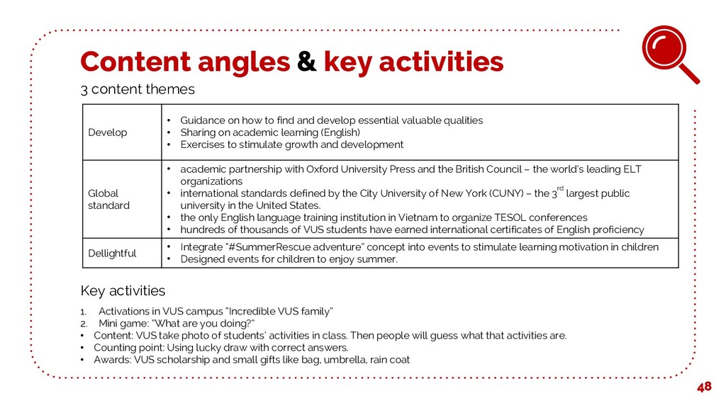 Question: Do you like your summer? What do you usually do in the summer? What do you think summer should be like? The clip proves that kids do not like summer because of extra classes and boring videos game,… They want to have fun and explore the world outside. Flow 2: Interview parents and kids Q: What do you usually do in the summer? A: Parents (having vacations and working), Kids (Extra classes, watching TV,…) Q: Do you think that your kids like their summer? A: Parents (Yes), Kids (No) Q: Do you want to share anything with your parents? A: I want a happy summer, playing with family and friends, relaxing and exploring. Clip proves that parents don’t understand their kids’ summer expectations - delightful and happy one. Flow 3: Bi and his best friends hope that summer will be a great time to play together but in fact their friend re busy with extra classes, video games. Bi decides to rescue their summer. He cosplays Superman and rescues his friend one by one. They create a team and rescue other kids’ summer. 33 Viral clip Time: 3’ each