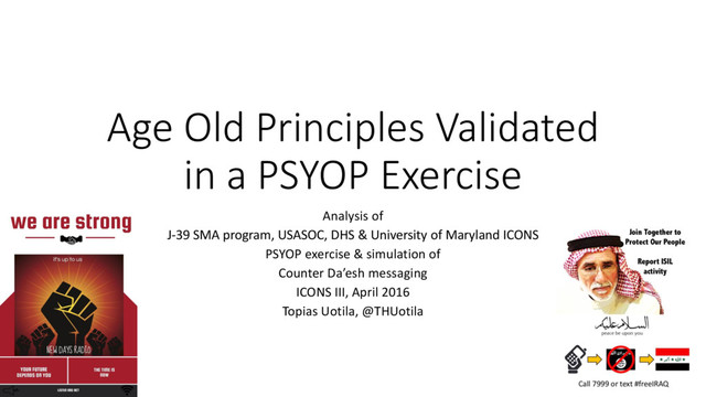 J-39 SMA program, USASOC, DHS & University of Maryland ICONS PSYOP exercise & simulation of Counter Da’esh messaging ICONS III, April 2016 Topias Uotila, @THUotila
