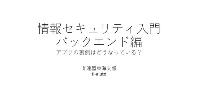 情報セキュリティ入門 バックエンド編 アプリの裏側はどうなっている? 某連盟東海支部 ti-aiuto