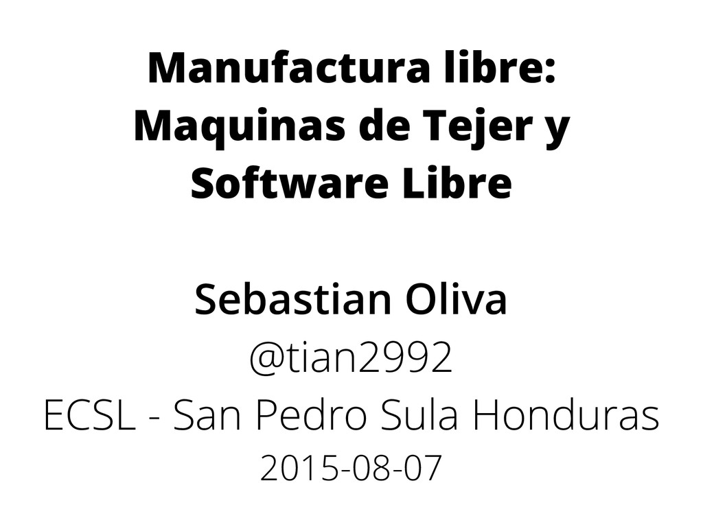 Manufactura libre: Maquinas de Tejer y Software Libre Sebastian Oliva