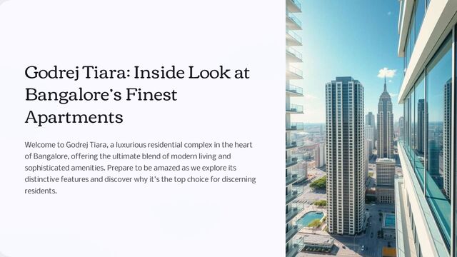 Welcome to Godrej Tiara, a premium residential project in Goraguntepalya, Yeshwanthpur, that sets a new benchmark for luxury living in Bangalore. Designed with modern architecture and eco-friendly features, these apartments offer a perfect mix of style, comfort, and sustainability. Whether you’re seeking a home for your growing family or a serene retreat from the bustling city life, Godrej Tiara caters to every need.
