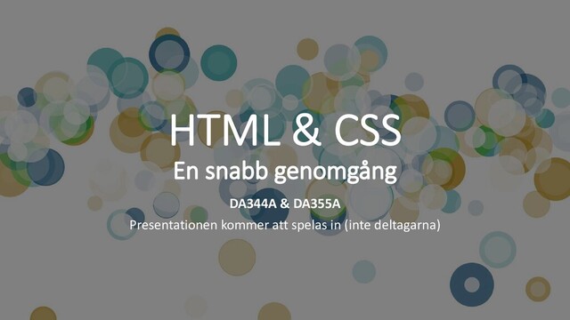 något • Nödvänligt att använda då datorn bara förstår 1 och 0. • Det betyder att allt i datorn (färger, figurer, knapptryckningar, beräkningar, musrörelser, bokstäver, siffror, typsnitt, bilder) representeras binärt. • T.ex. bokstaven A = 65 (dec) = 01000001 (bin) = 41 (hex) • I webbteknik kommer vi i kontakt med flera sådana bestämda regelsystem & standarder för hur saker och ting är representerade • CharacterEncoding(charset), hur tecken ska beskrivas, exempel ISO 8859, UTF 8, Unicode, …(äldre standard: ASCII) • Färgmodell, hur färger ska beskrivas, exempel RGB, CMY, CMYK