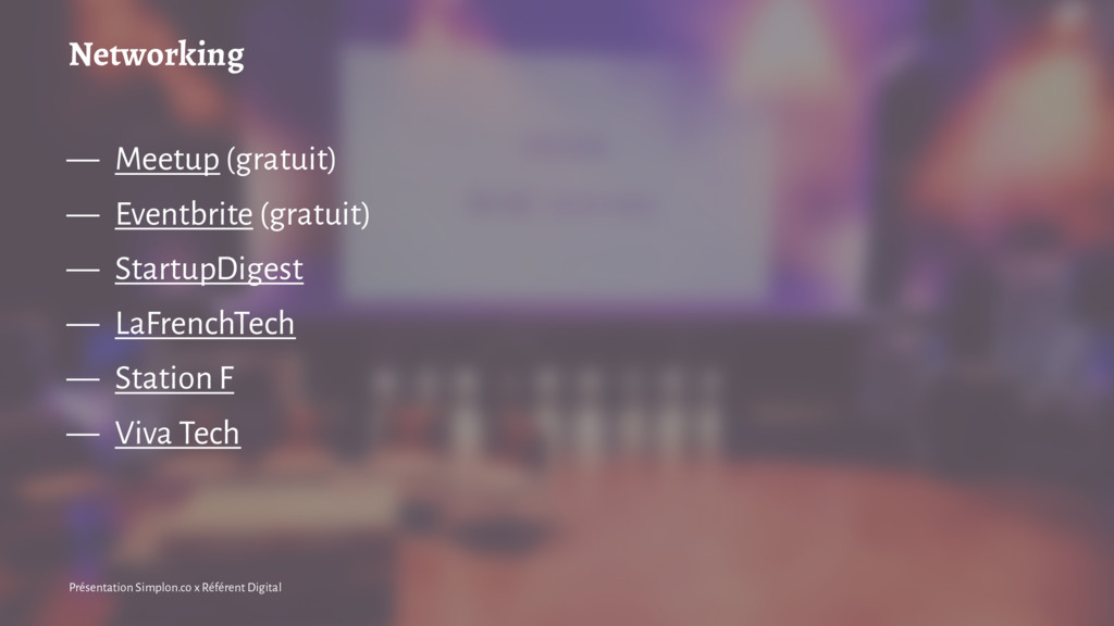 Networking — Meetup (gratuit) — Eventbrite (gratuit) — StartupDigest —