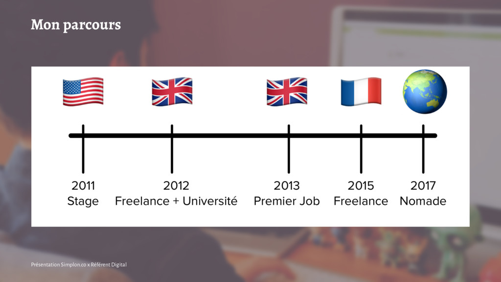 — Étudié à l'Université en Angleterre — Cursus Digital Media — Digital Marketing, — Management de Projet, — Web Development, — Design, ... Présentation Simplon.co x Référent Digital