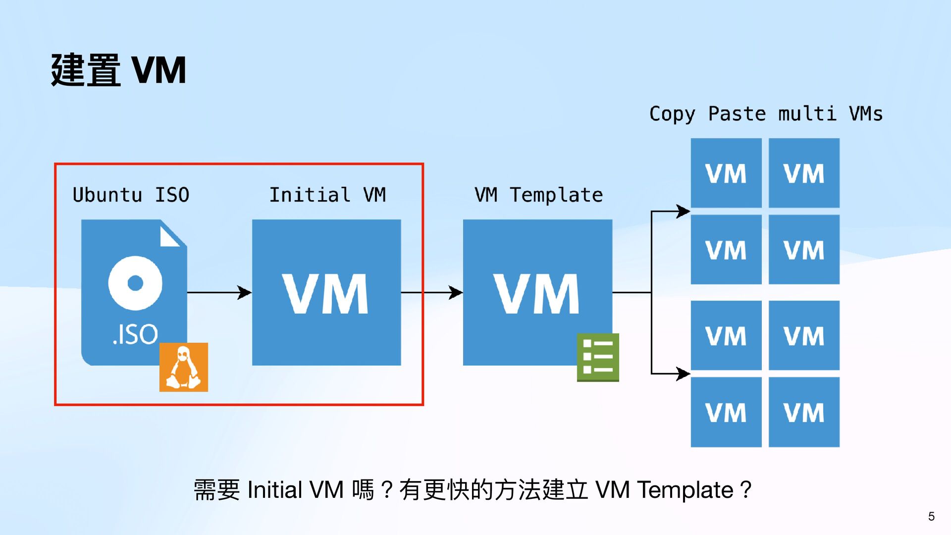建置 VM 5 需要 Initial VM 嗎?有更快的 方 法建立 VM