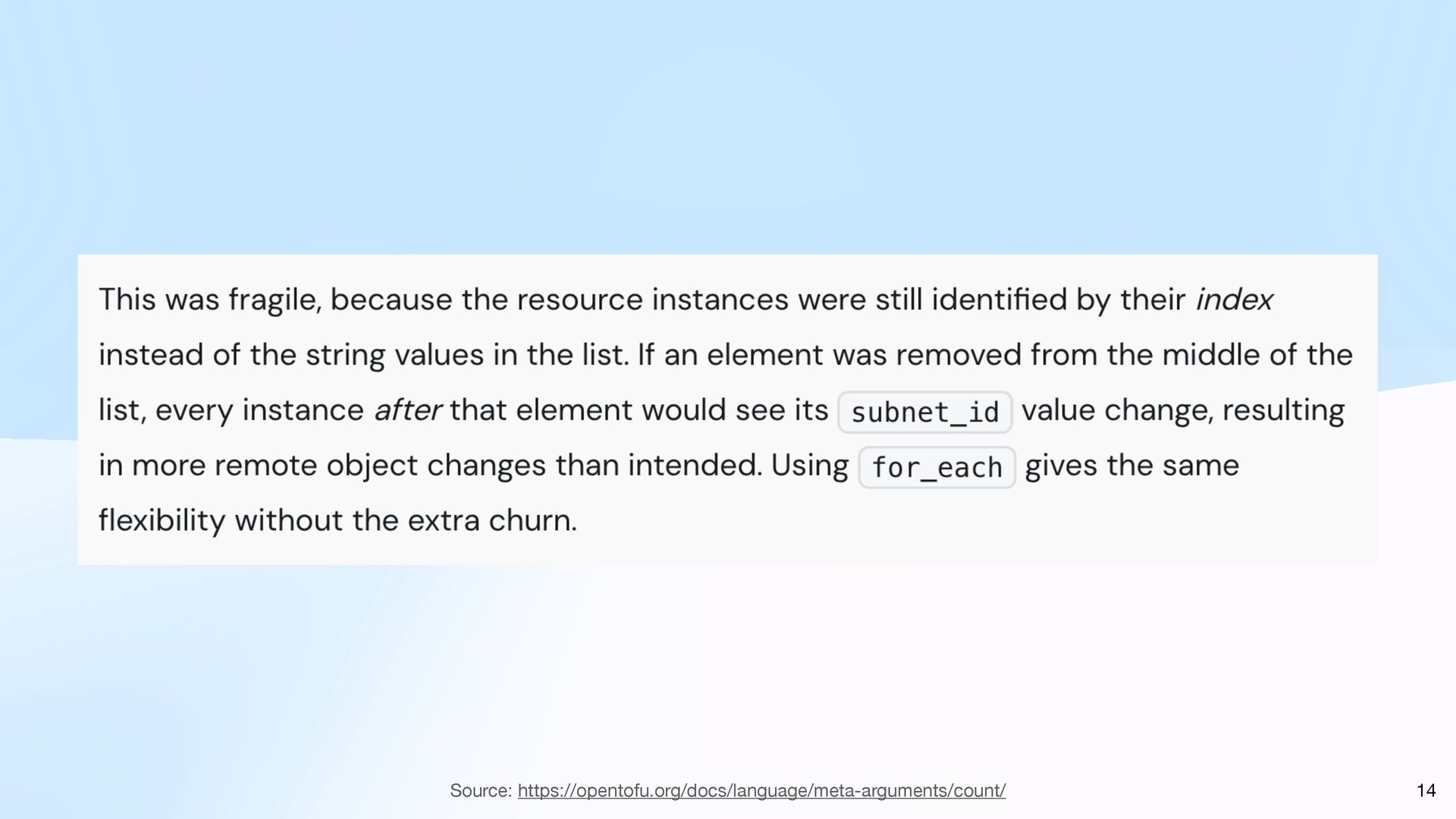 14 Source: https://opentofu.org/docs/language/meta-arguments/count/