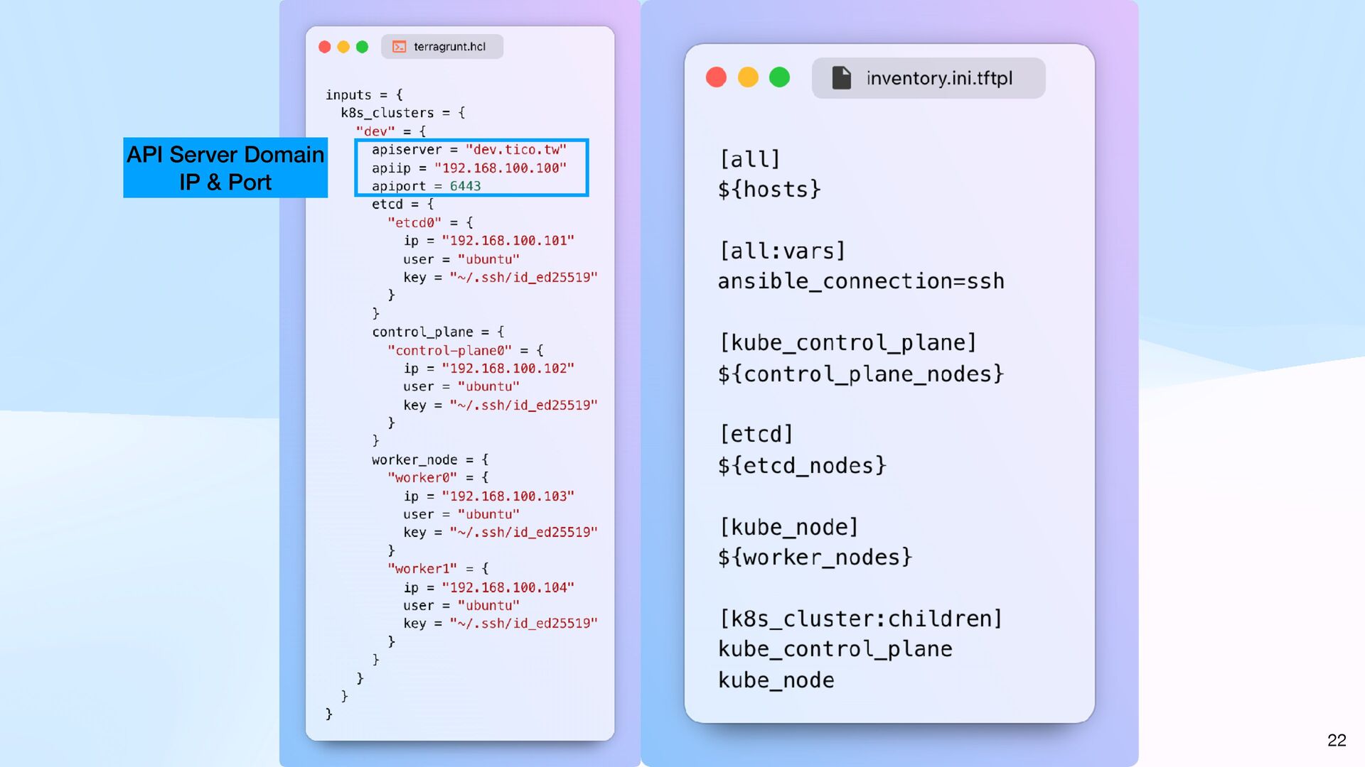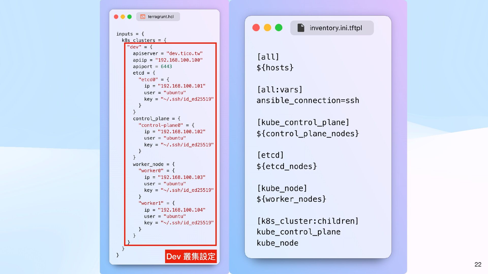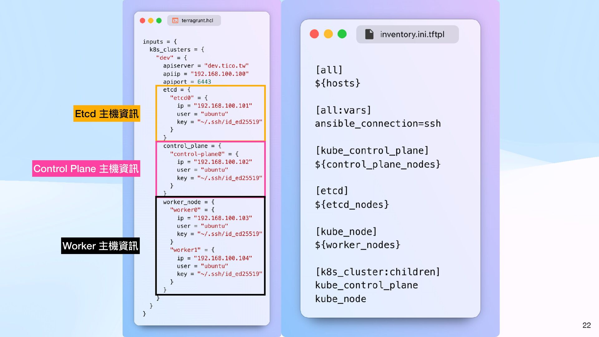 22 Etcd 主機資訊 Control Plane 主機資訊 Worker 主機資訊