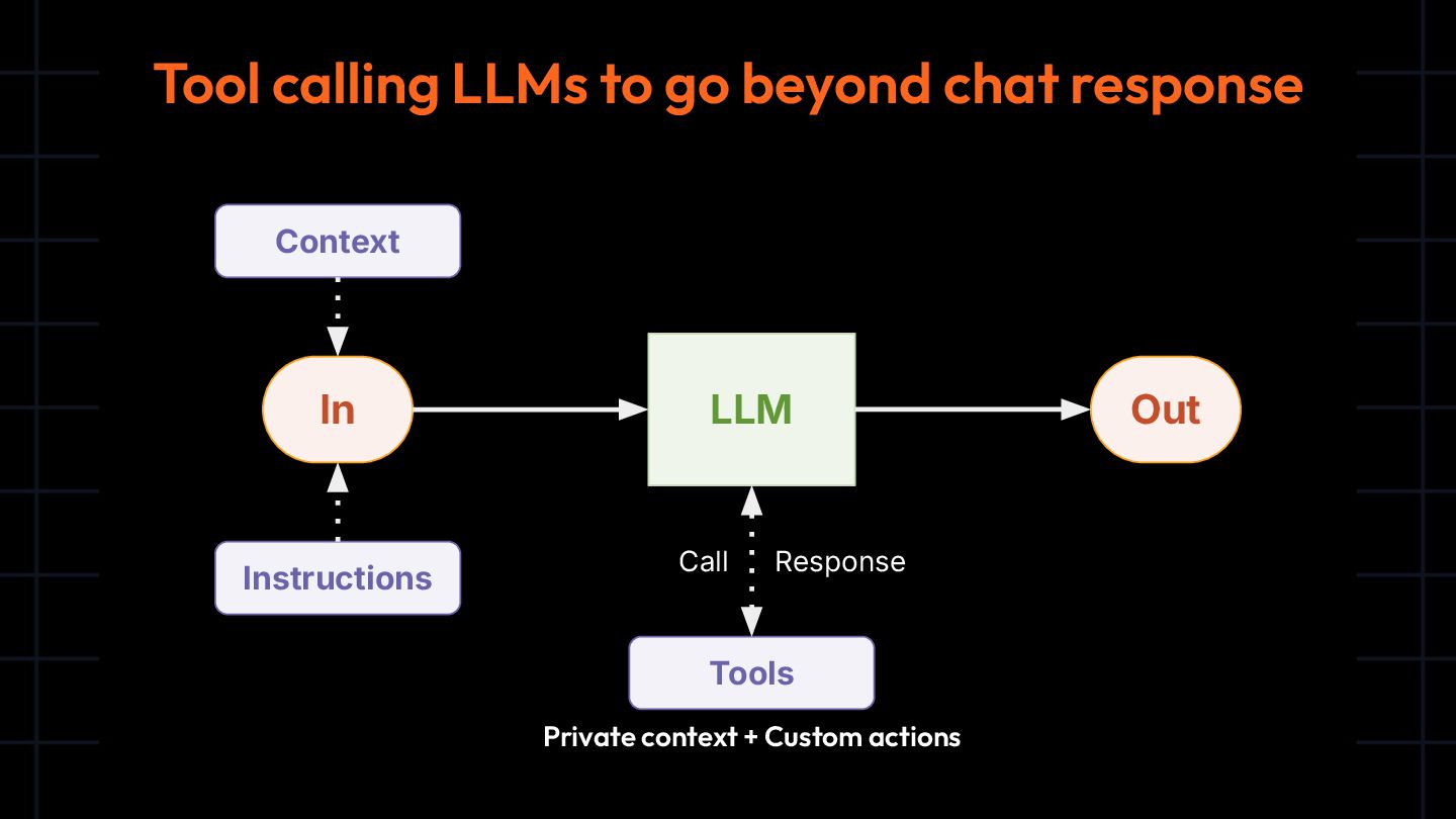Out Context Instructions Tools Call Response Private context + Custom actions