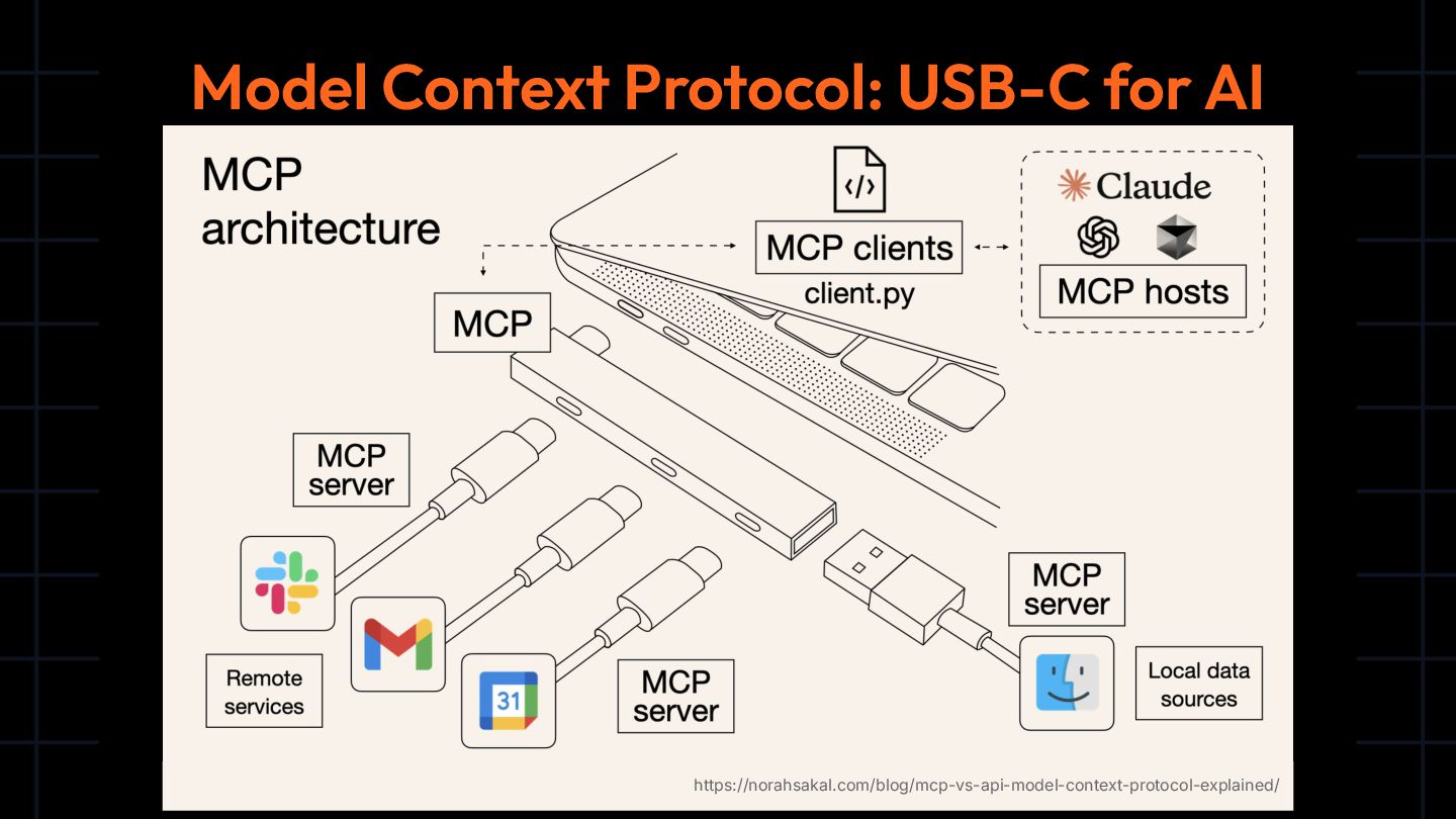 Model Context Protocol: USB-C for AI applications https://norahsakal.com/blog/mcp-vs-api-model-context-protocol-explained/