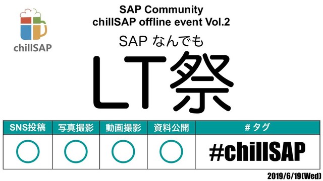 2019年6月19日開催「chillSAP 第2回イベント Lightning Talk祭」Openingスライド by Taiki Igarashi #chillSAP #SAP #SAPCommunity