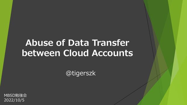 T1537 https://attack.mitre.org/techniques/T1537/ 本文の一部を引用: Adversaries may exfiltrate data by transferring the data, including backups of cloud environments, to another cloud account they control on the same service to avoid typical file transfers/downloads and network-based exfiltration detection. 翻訳: 攻撃者は、クラウド環境のバックアップを含むデータを同じサービスで制御す る別のクラウドアカウントに転送することで、データを盗み出す可能性があり ます。これにより、通常のファイル転送/ダウンロードや、ネットワークベー スの盗み出しの検出を回避できます。