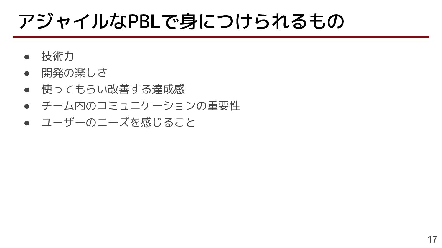アジャイルなPBLで身につけられるもの 17