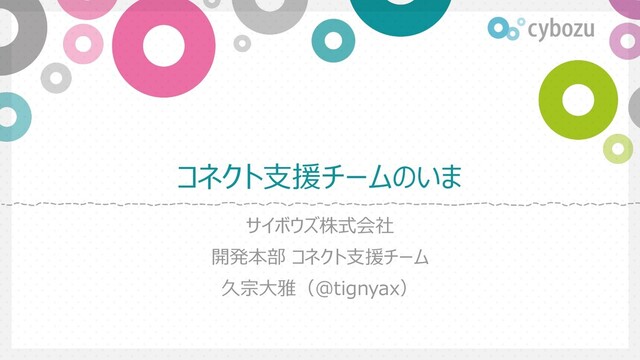 コネクト⽀援チームのいま サイボウズ株式会社 開発本部 コネクト⽀援チーム 久宗⼤雅(@tignyax)