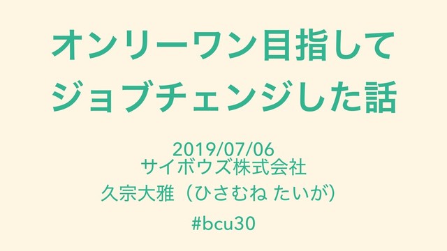 ΦϯϦʔϫϯࢦͯ͠ δϣϒνΣϯδͨ͠ 2019/07/06 αΠϘζגࣜձࣾ ٱफେխʢͻ͞ΉͶ ͍͕ͨʣ #bcu30