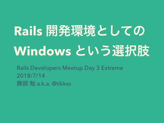 Rails ։ൃڥͱͯ͠ͷ Windows ͱ͍͏બࢶ Rails Developers Meetup Day 3 Extreme