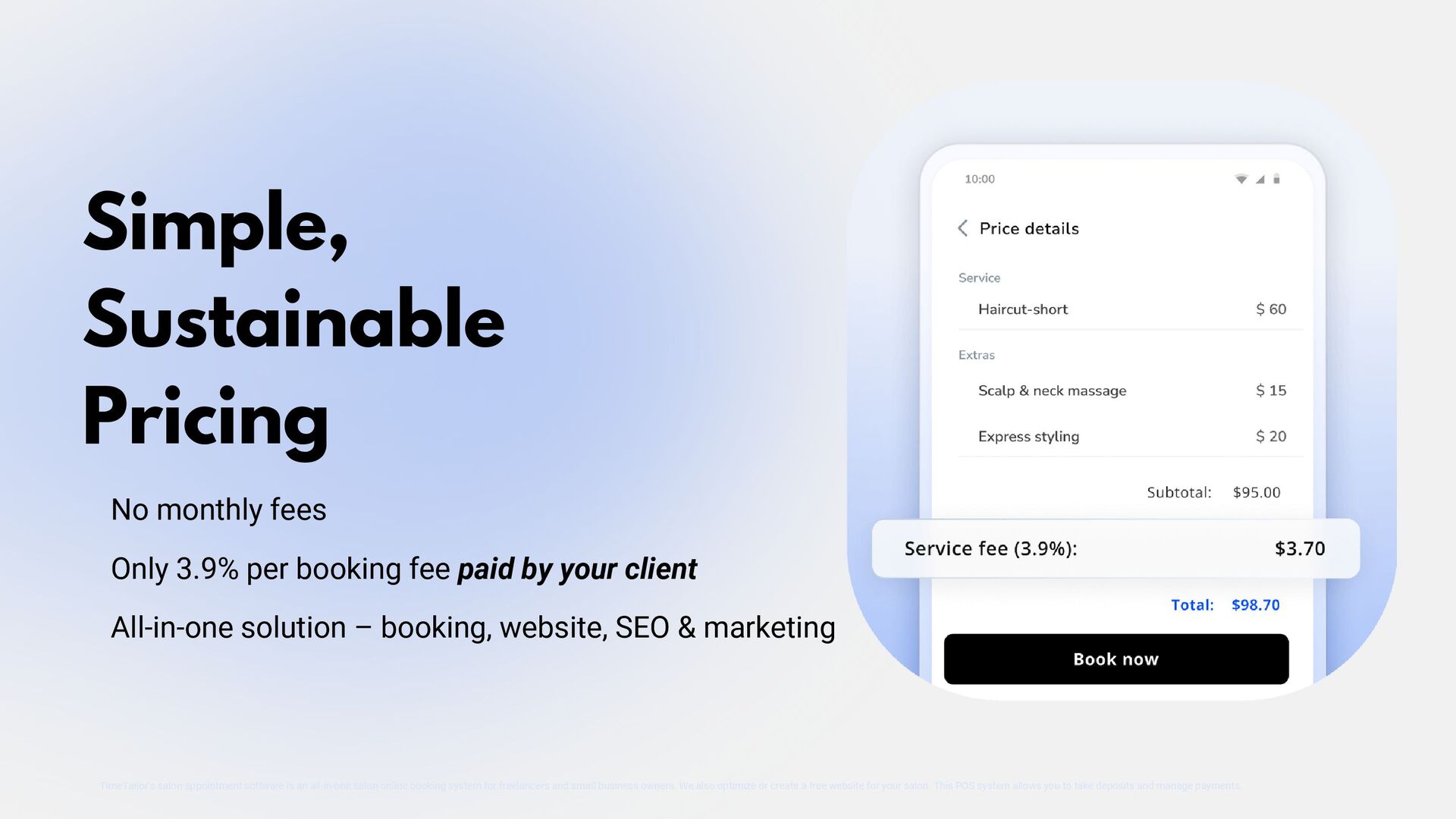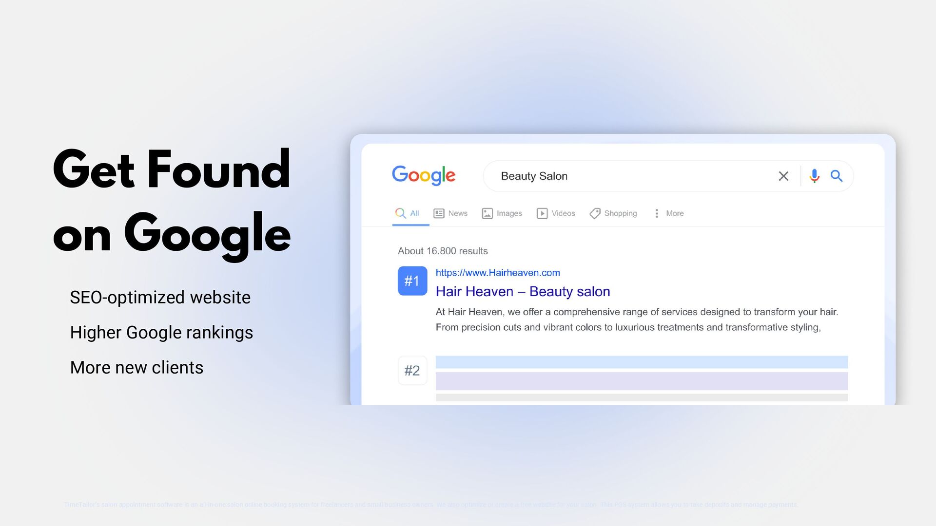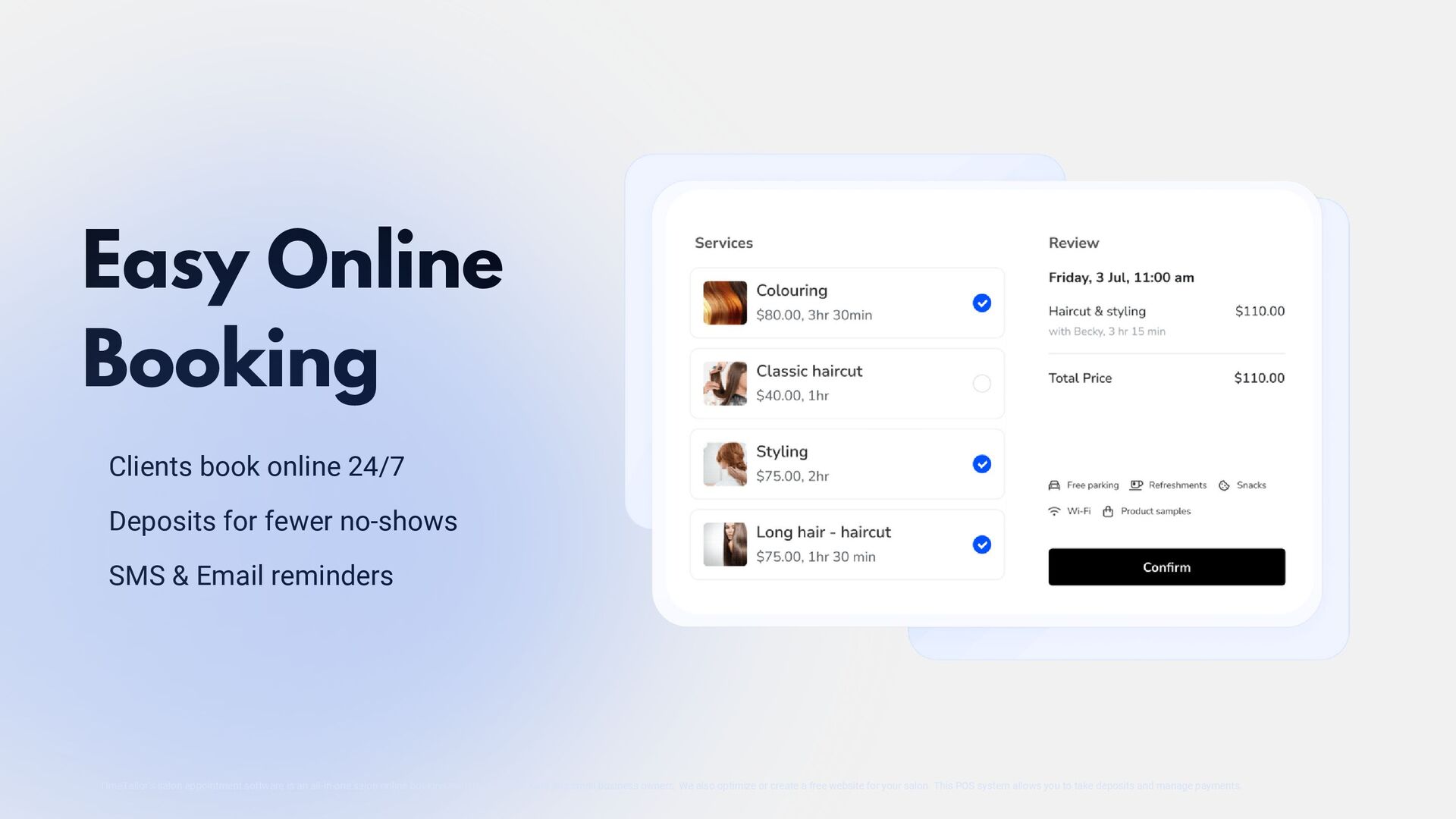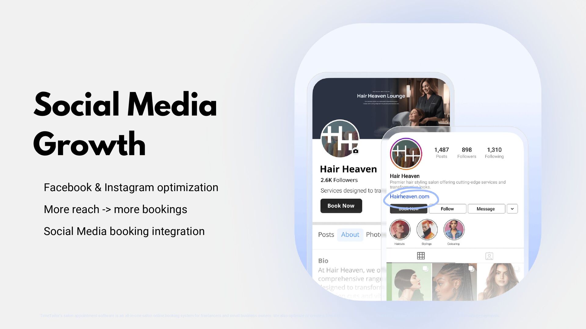 TimeTailor is a free booking software designed specifically for salons. Our platform simplifies appointment scheduling, client management, and business operations, helping salons deliver exceptional service and grow their business efficiently.
