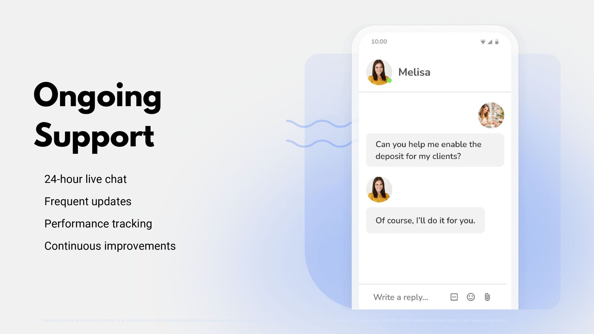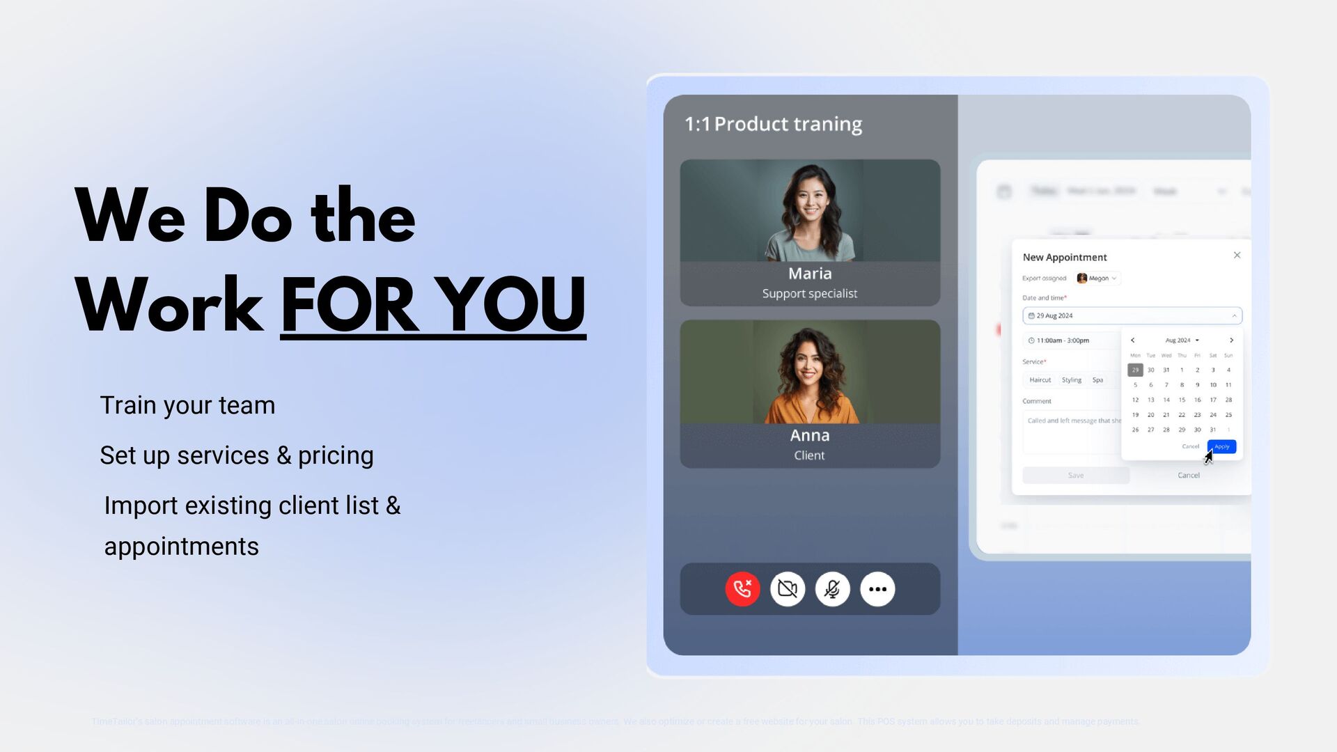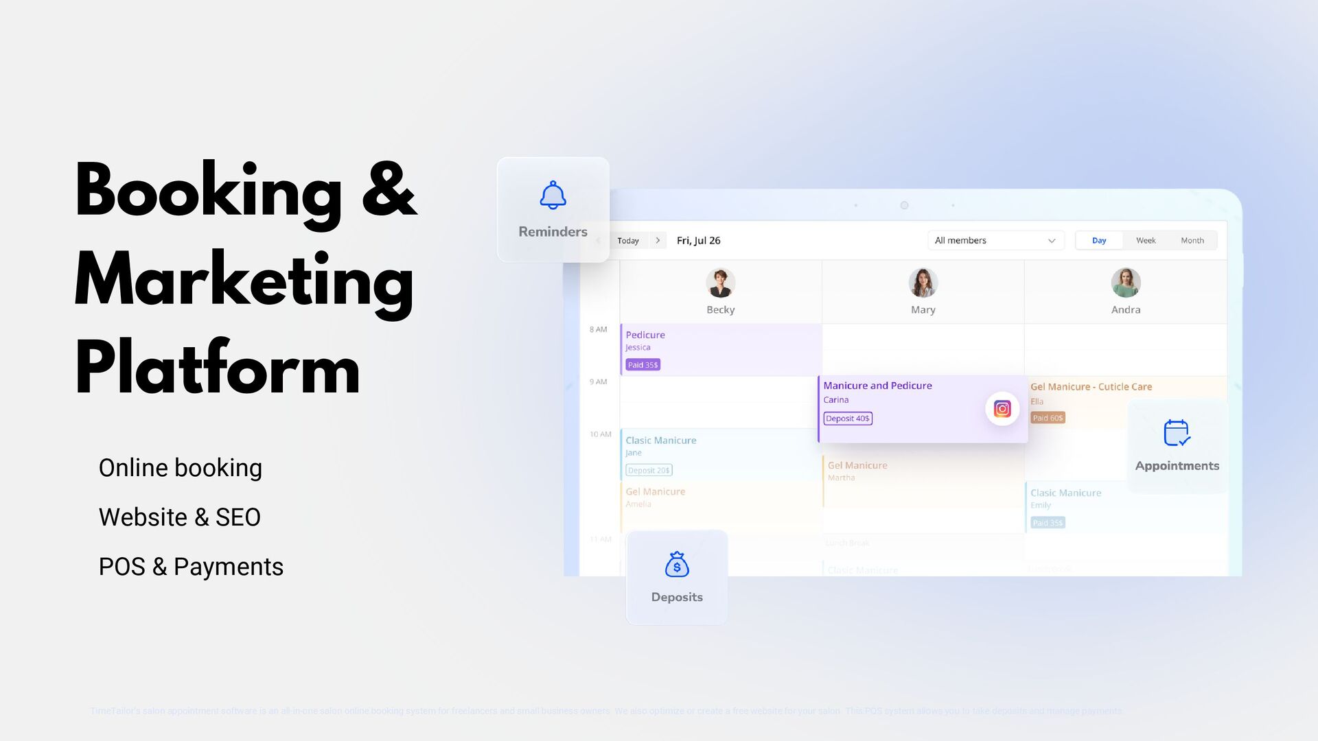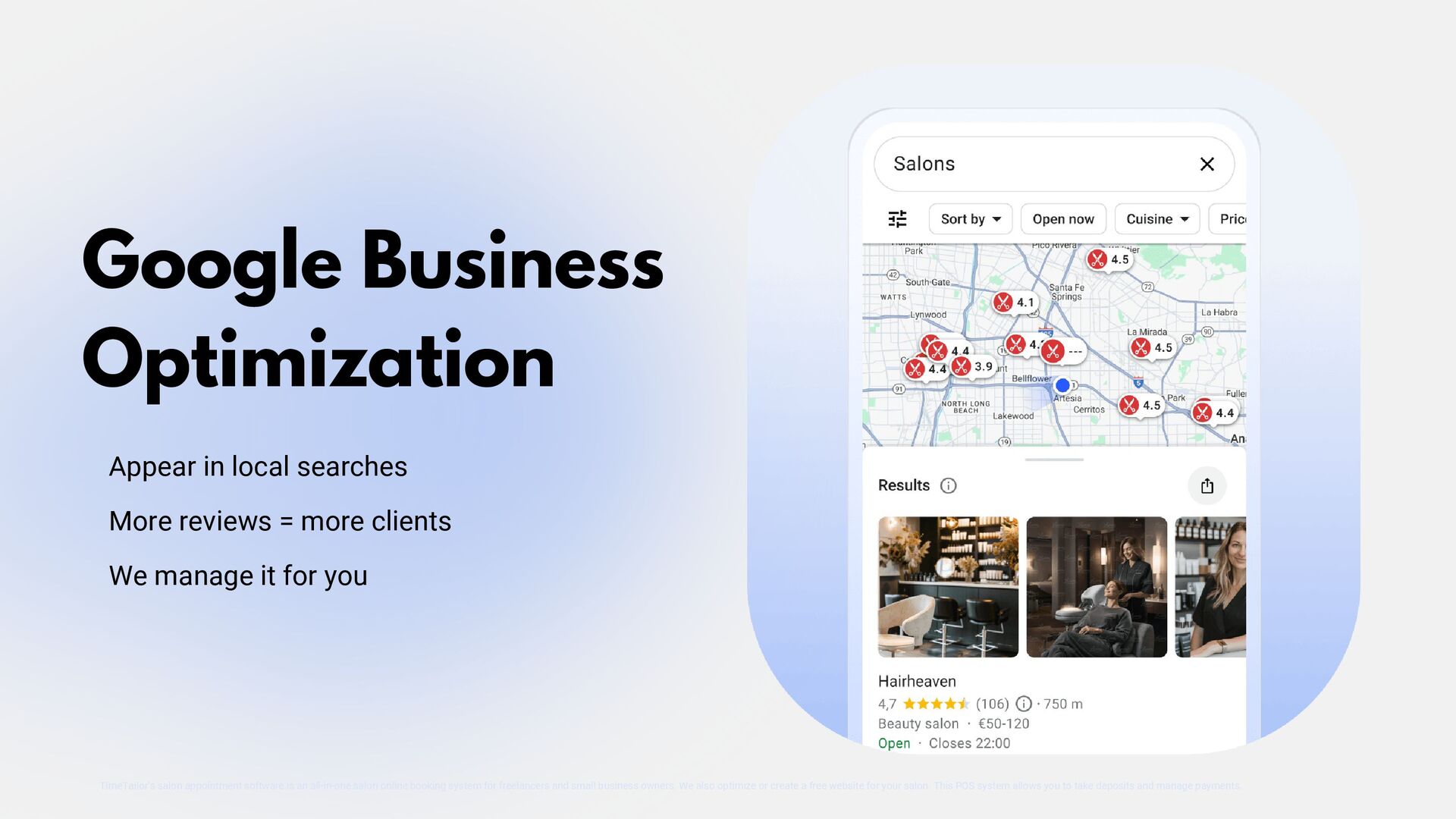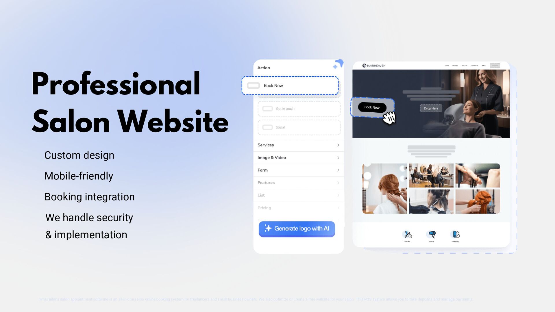 TimeTailor is a free booking software designed specifically for salons. Our platform simplifies appointment scheduling, client management, and business operations, helping salons deliver exceptional service and grow their business efficiently.
