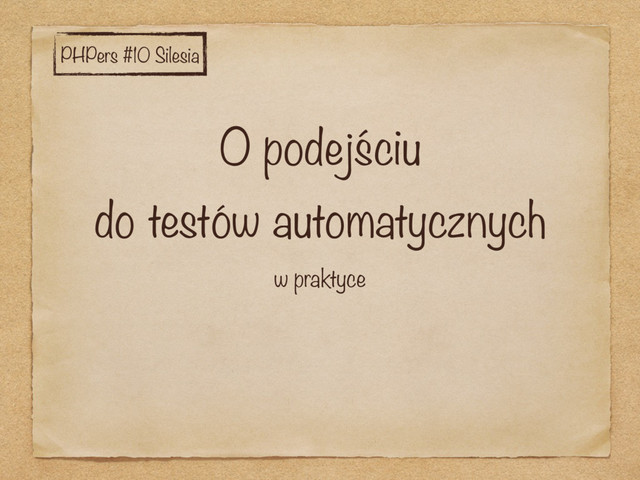 O podejściu do testów automatycznych w praktyce PHPers #10 Silesia