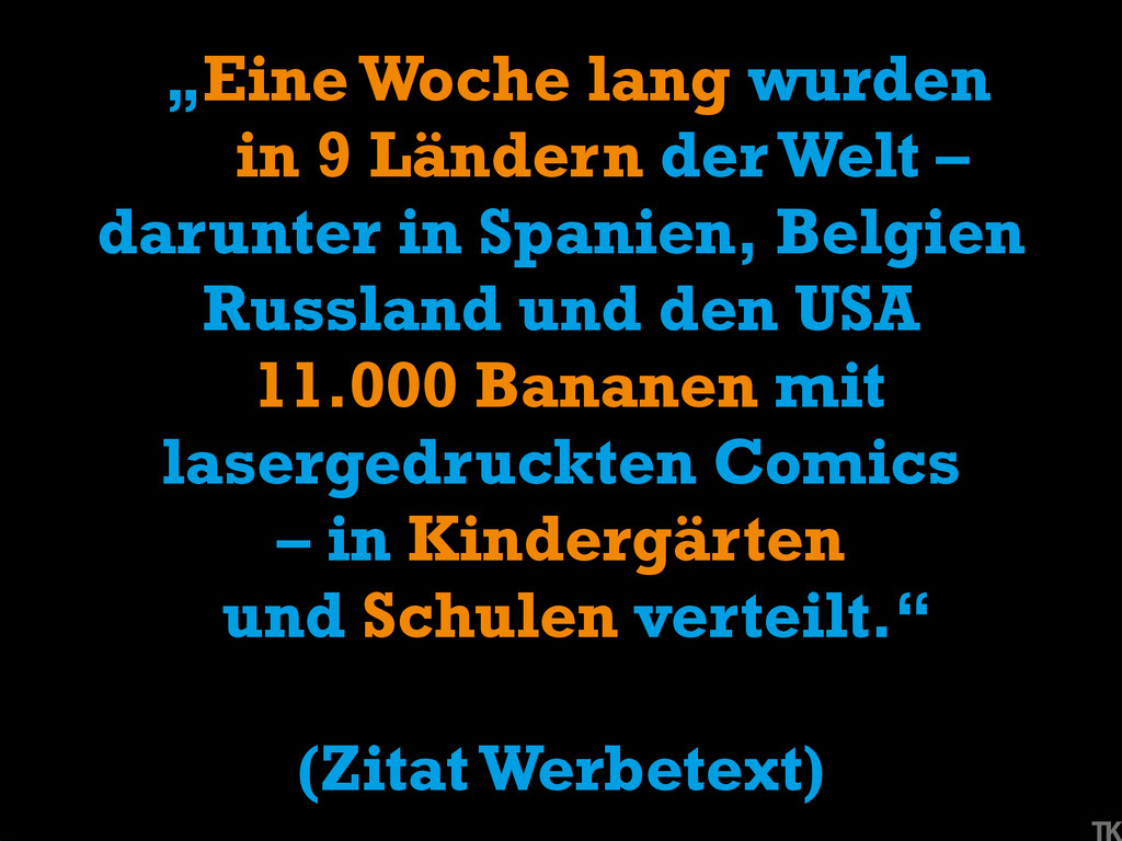 Bananen pro Tag verteilt auf 9 Länder sind 244 Bananen, an nur einem einzigen Tag und nur ein einziges Mal in einer Woche für nur einen Kindergarten oder nur eine einzige Schule !