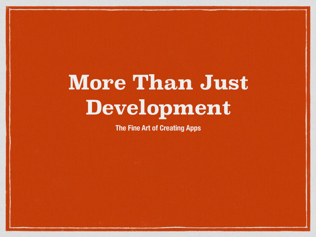 A look at the parallels between software development and Art History, and examining the creativity involved. Ultimately examining the craftsman's "intent" of pursuing finesse in art and solutions development.