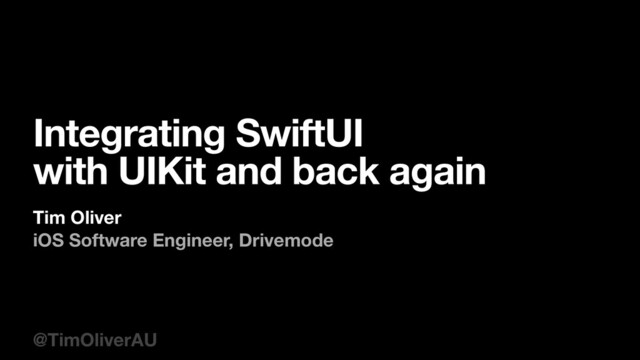 The introduction of SwiftUI brought a whole new paradigm to developing apps on all of Apple's platforms. Certainly now that iOS 14 is here, it's never been a better way to learnQ However in most day-to-day codebases, getting SwiftUI to integrate nicely in existing UIKit code will be of critical importance. This presentation covers integrating SwiftUI into UIKit, and vice versa, in order to use the best of both worlds to build better products faster.