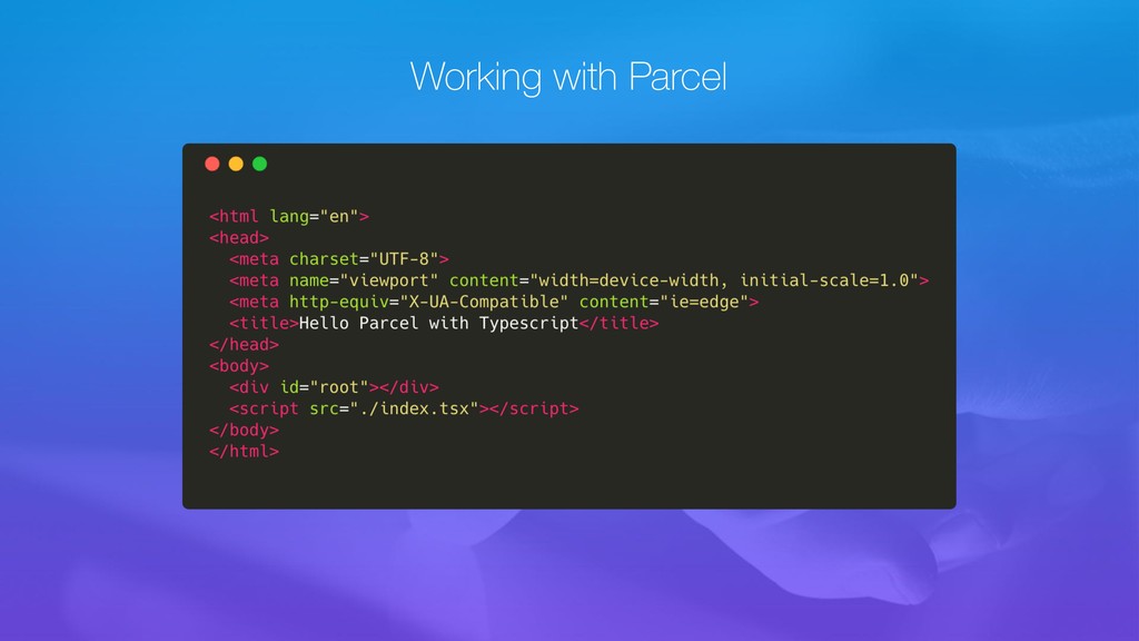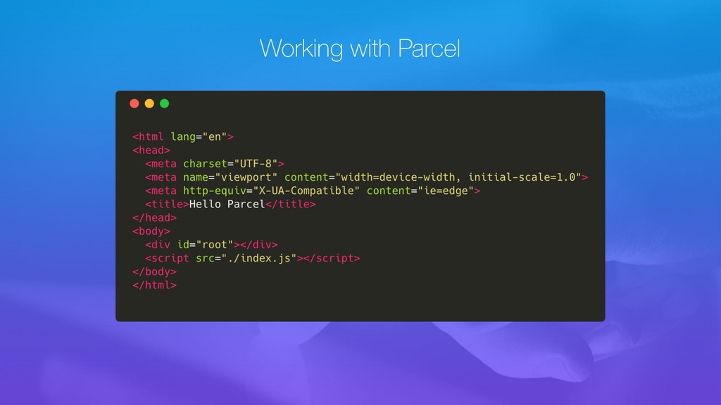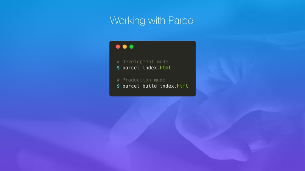 no learning curve Released in December 2017 Part of the alternatives to Webpack (apart from Browserify, Rollup, Fusebox) Performance focus - multicore compilation, filesystem cache for fast rebuilds. Developer experience focus (friendly error logging & no-config HMR)