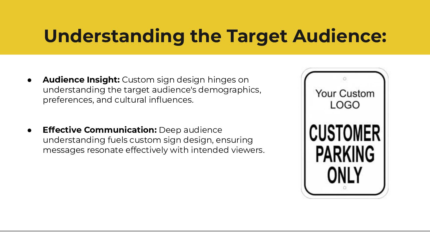 Audience Insight: Custom sign design hinges on understanding the target audience's demographics, preferences, and cultural influences.