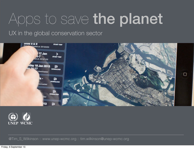 sector On a basic level we want people to use our products • So that better data is collected, more frequently • So that policy makers understand problems & make better decisions • So that behavior changes Ultimately so that biodiversity & ecosystems are protected and enhanced Friday, 6 September 13