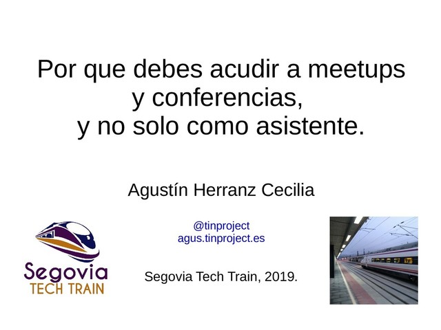 ¿Todavía no conoces el mundo de los meetups y conferencias técnicas? Aprovecha y acercate a SegoviaTechTrain donde te contaré todo las ventajas que puedes obtener en tu carrera profesional, y a nivel personal, acudiendo a eventos técnicos...