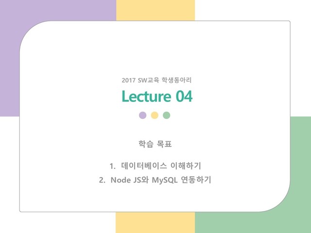 Lecture 04 2017 SW교육 학생동아리 학습 목표 1. 데이터베이스 이해하기