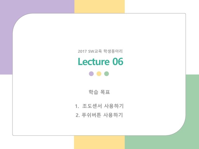 Lecture 06 2017 SW교육 학생동아리 학습 목표 1. 조도센서 사용하기