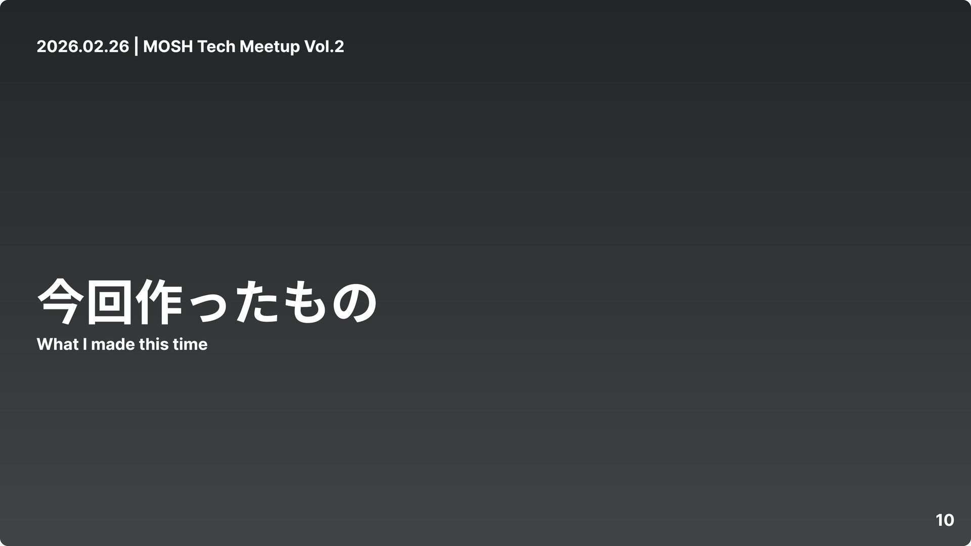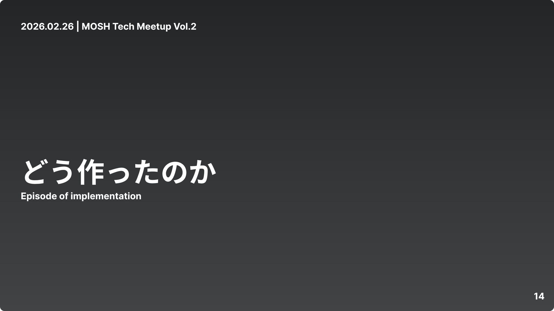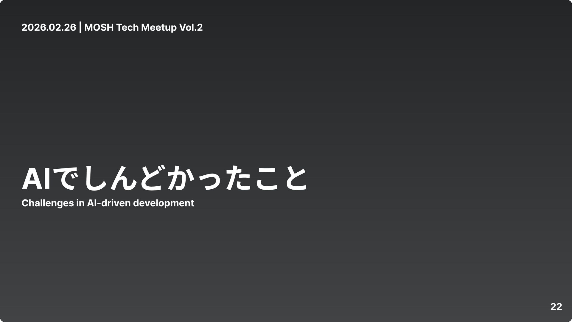 S / A n d r o i d n ¢ × ê ™ µ ¯ µ ¯ ‰ z a ⁄ c h Ž Ñ L Ø D n g „ g C l a u d e C o d e k Ð È ó ¿ Ã Á 202 6 .02. 26 | MO SH T ech Me etu p Vol.2 15 V c O − h W _ ¤ á ü ¸ g ¢ × ê ™ V i b e C o d i n g ¹Æ Ã×1 M anu sk8 ŁR