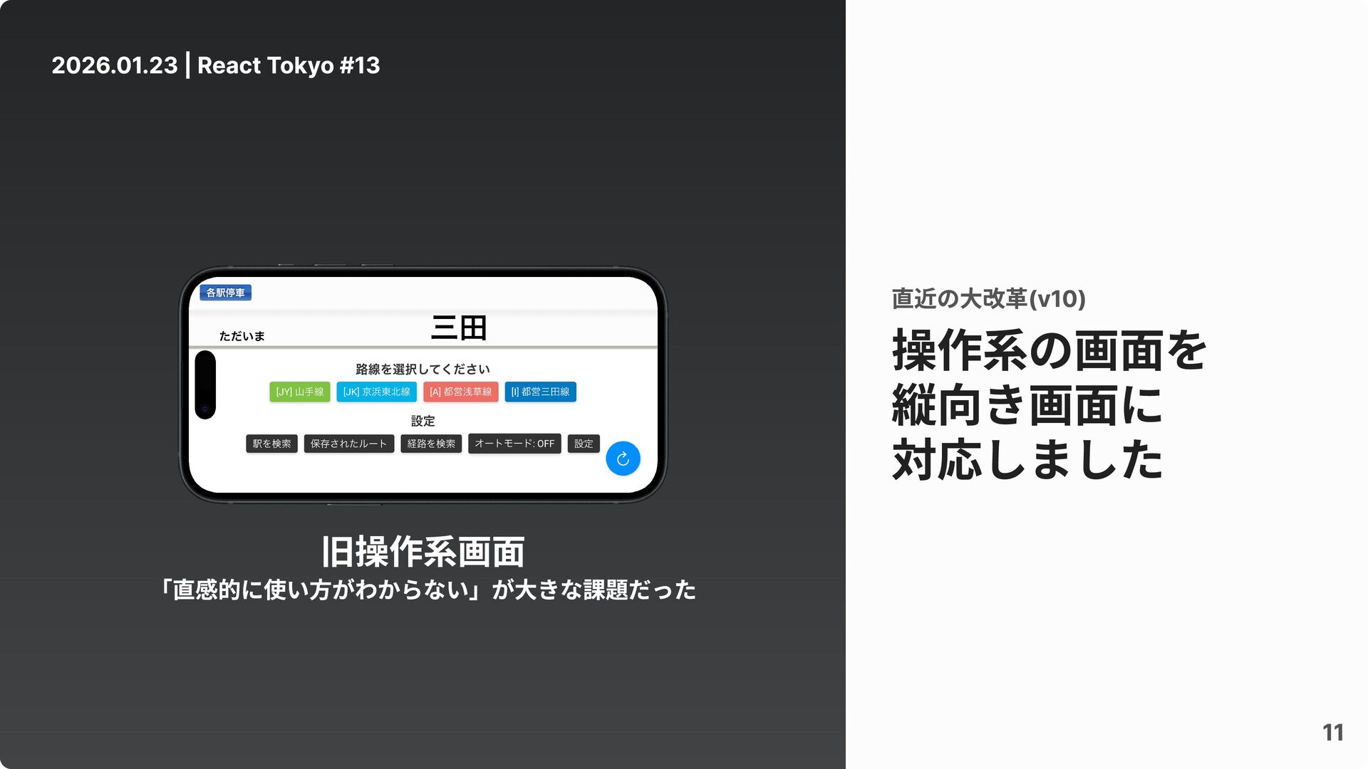 11 2026.01.23 | React Tokyo #13 操作系の画面を 縦向き画面に 対応しました 直近の大改革(v10)