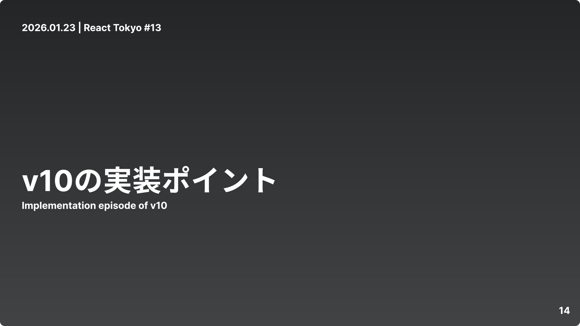 14 2026.01.23 | React Tokyo #13 v10の実装ポイント Implementation episode of
