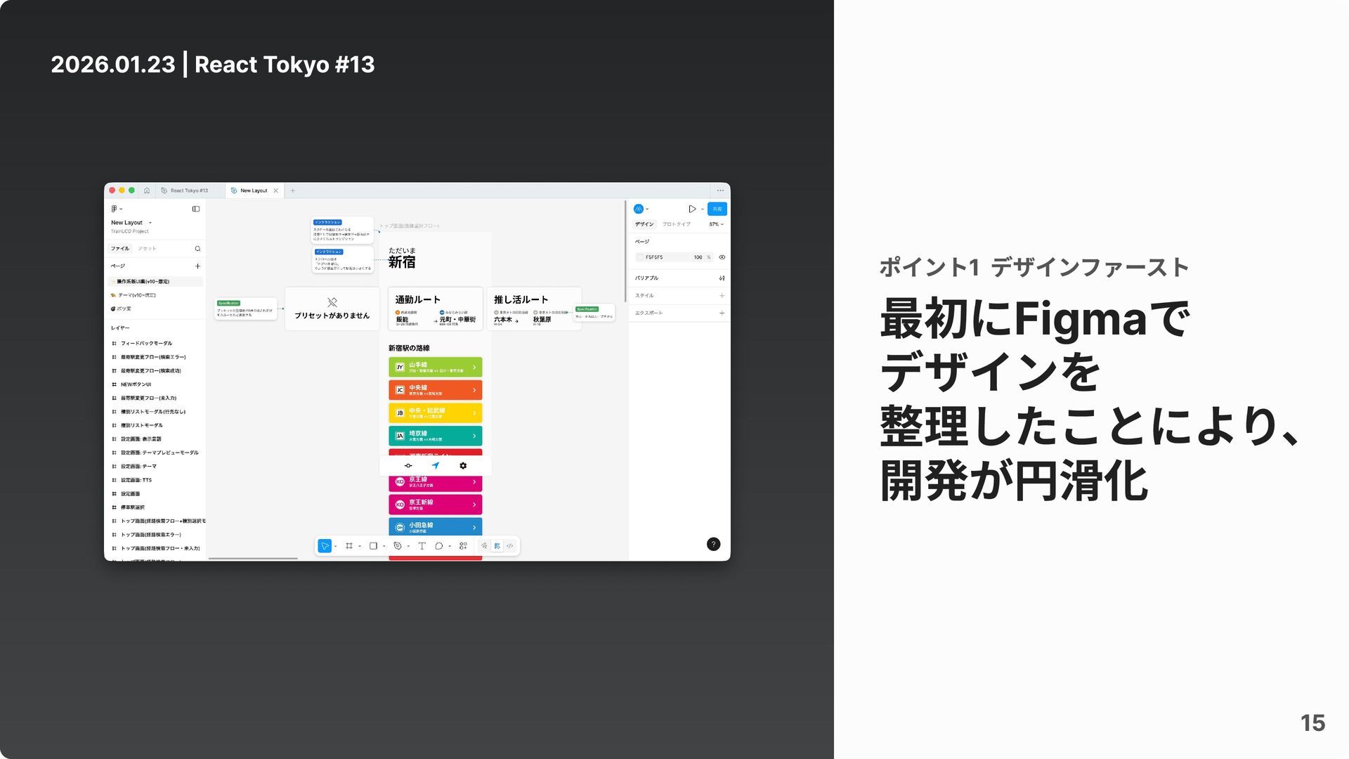 2026.01.23 | React Tokyo #13 15 最初にFigmaで デザインを 整理したことにより、 開発が円滑化