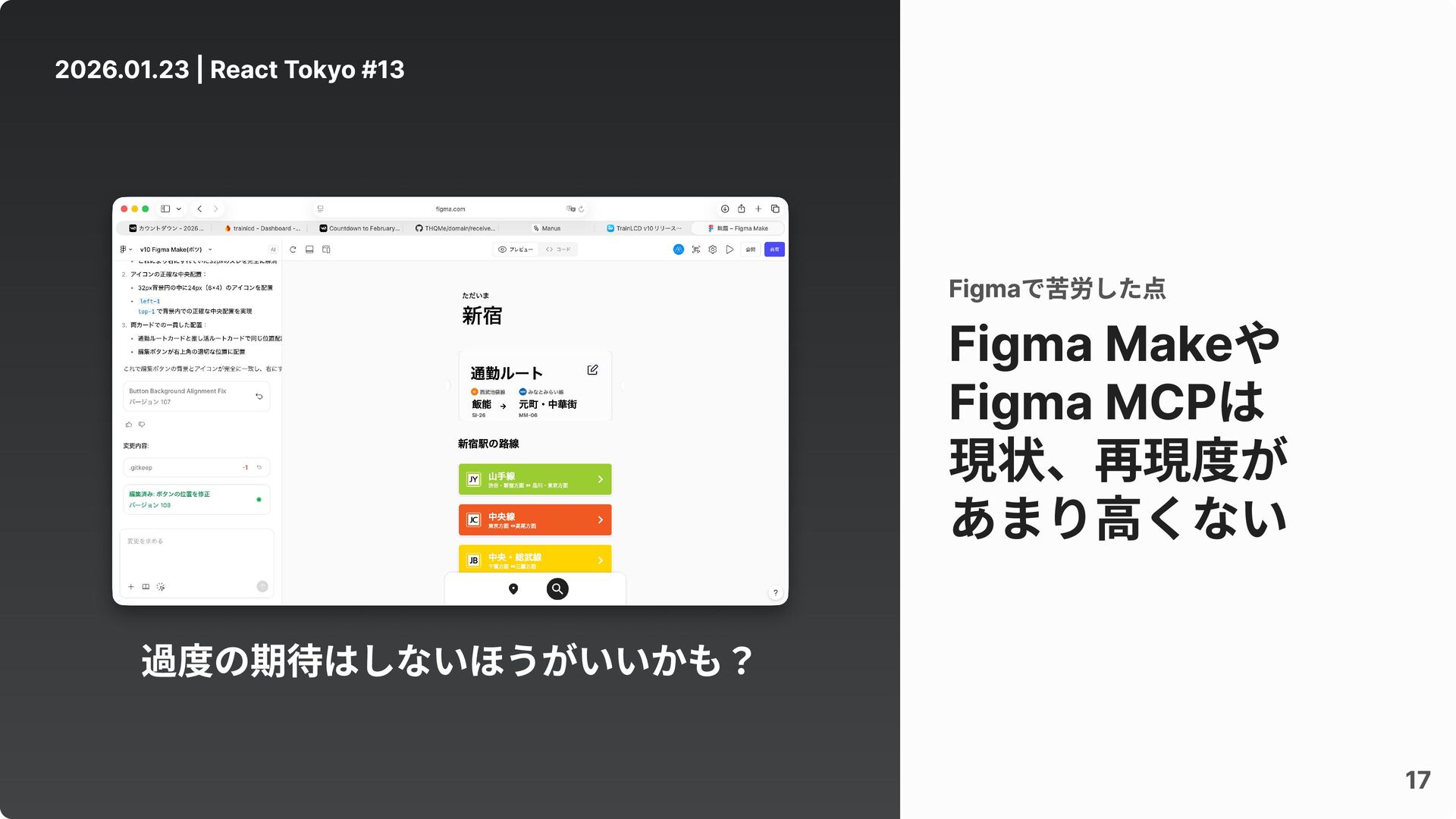 過度の期待はしないほうがいいかも? 2026.01.23 | React Tokyo #13 17 Figma Makeや Figma