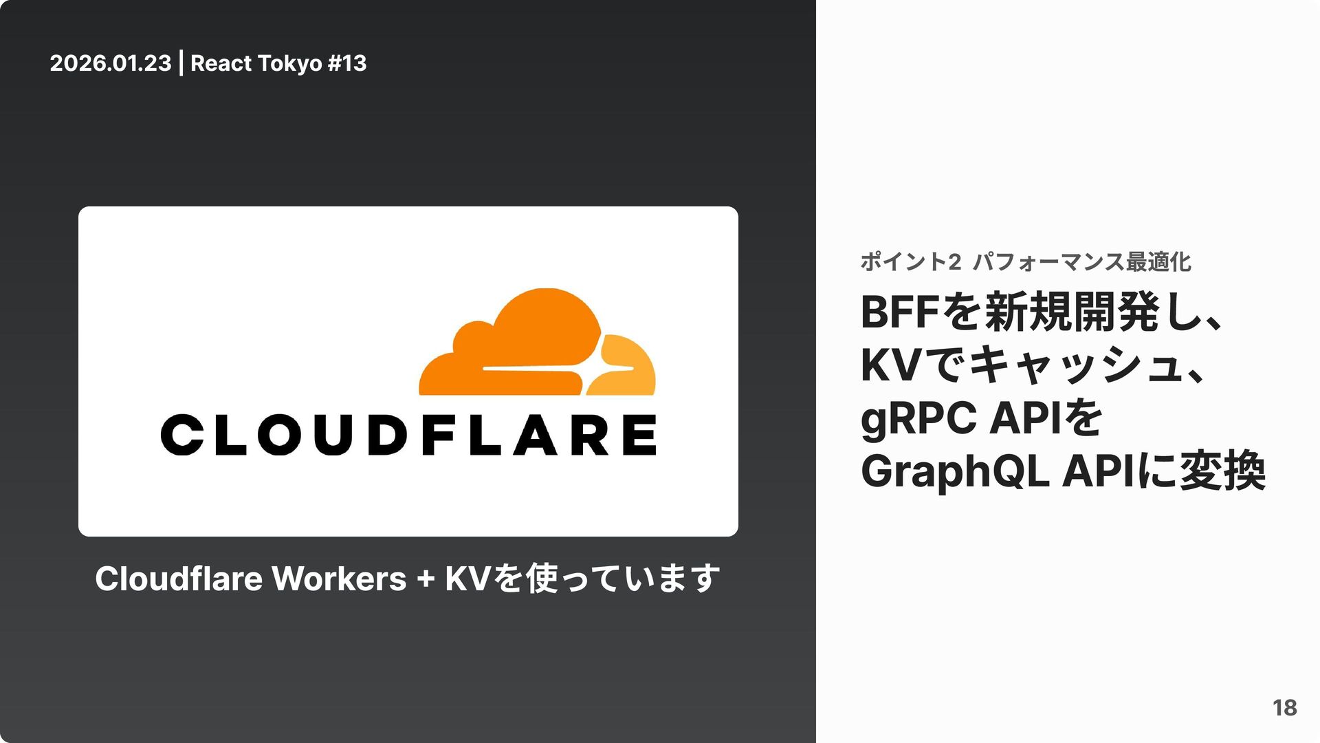 2026.01.23 | React Tokyo #13 18 BFFを新規開発し、 KVでキャッシュ、 gRPC APIを