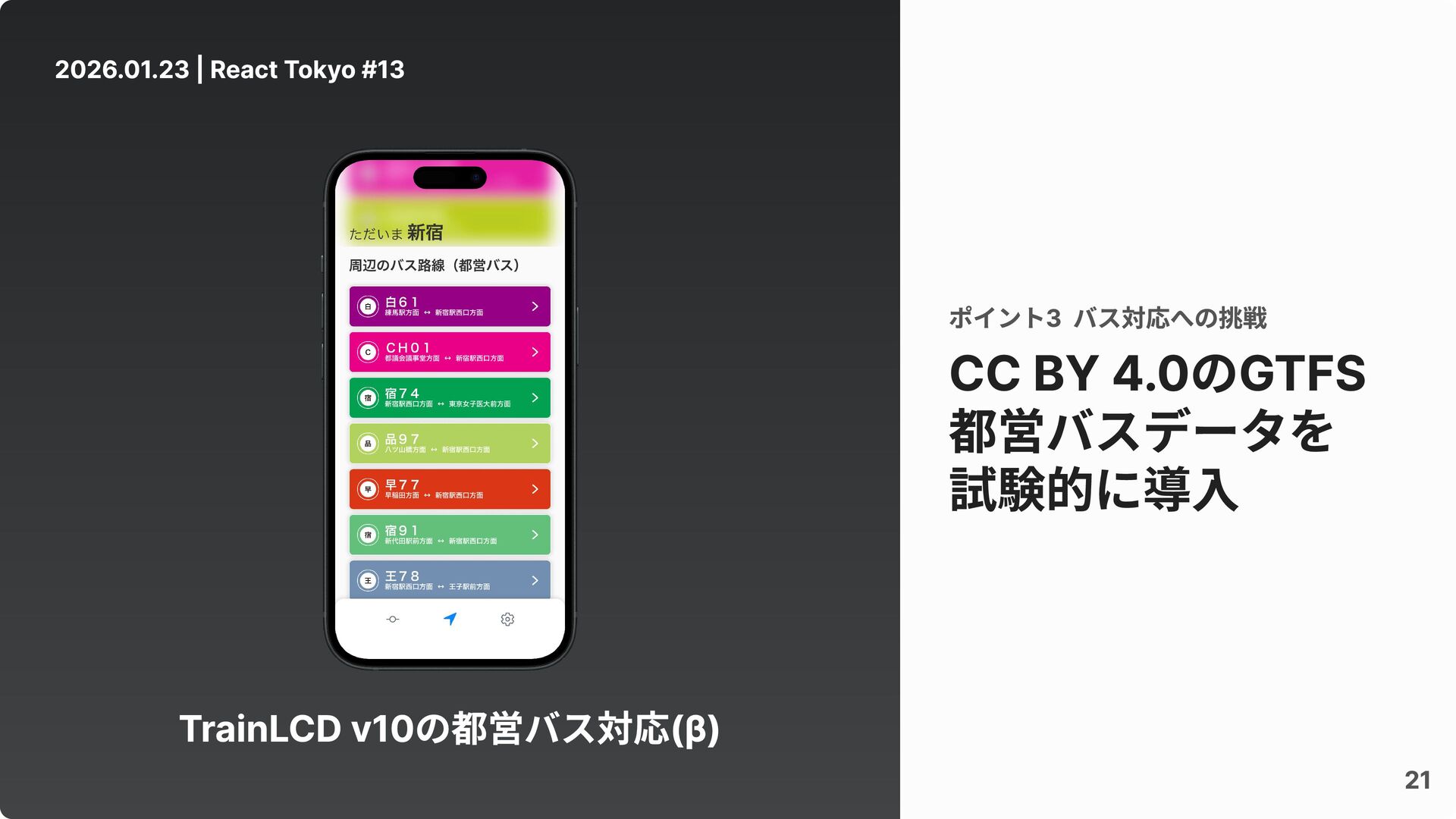 TrainLCD v10の都営バス対応(β) 2026.01.23 | React Tokyo #13 21 CC BY