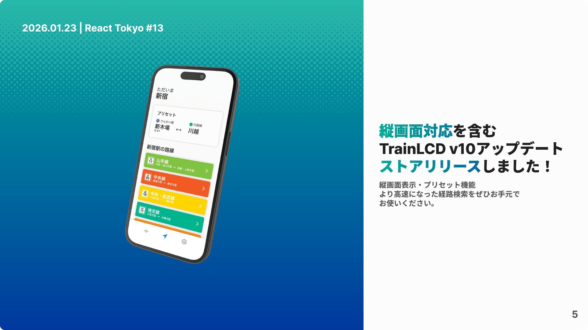 5 2026.01.23 | React Tokyo #13 縦画面対応 ストアリリース を含む TrainLCD
