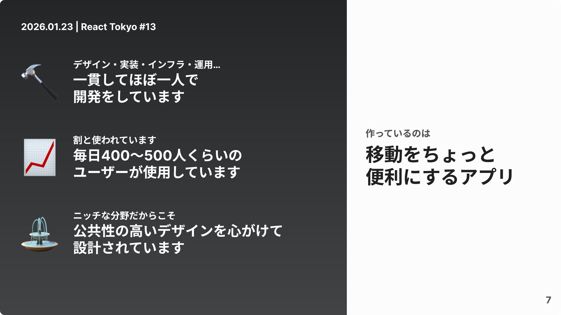 2026.01.23 | React Tokyo #13 移動をちょっと 便利にするアプリ 作っているのは