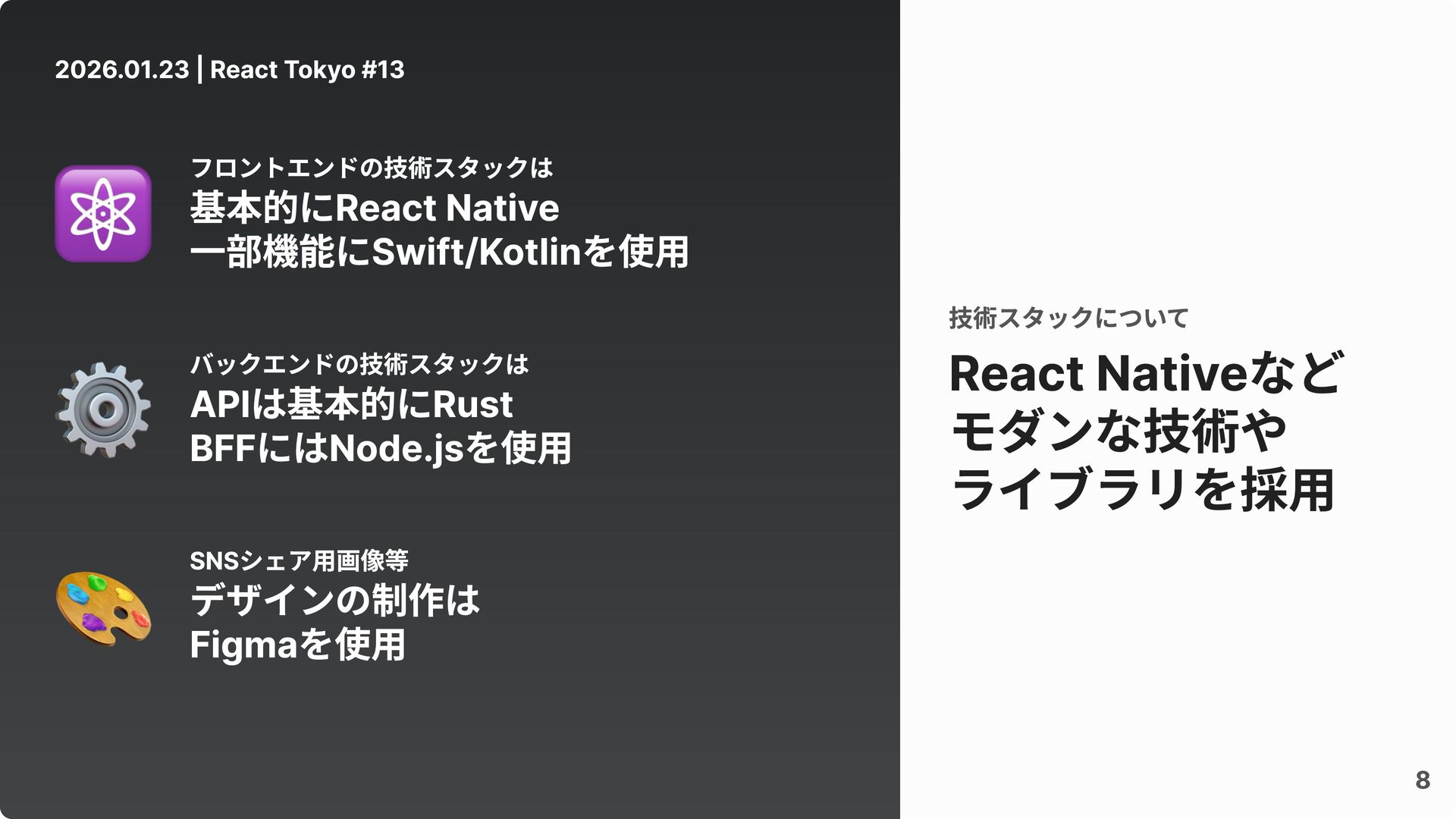 8 2026.01.23 | React Tokyo #13 React Nativeなど モダンな技術や ライブラリを採用 技術スタックについて