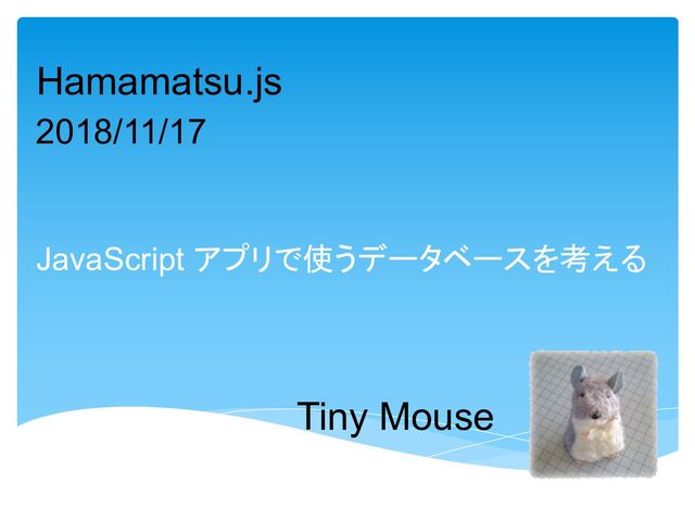 Tiny Mouse JavaScript アプリで使うデータベースを考える Hamamatsu.js 2018/11/17