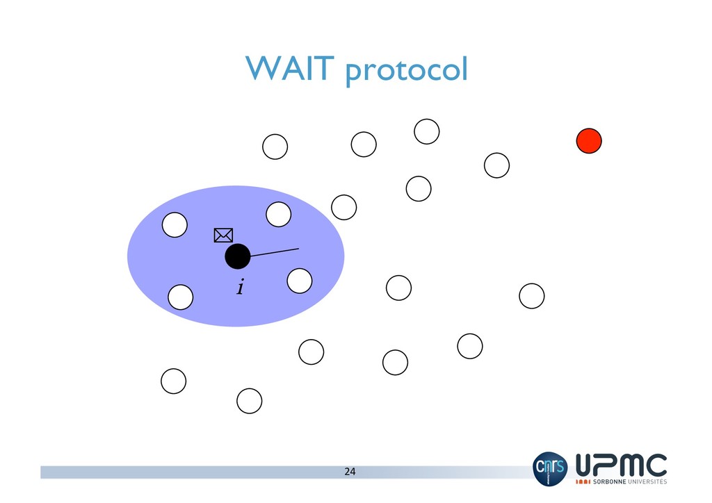 transmission until direct contact Metric – Waiting delay: the time between message creation and destination detection Performances – Generation of 10 messages at random times 23